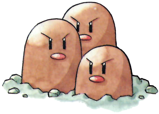 “A team of Diglett triplets. It triggers huge earthquakes by burrowing 60 miles underground”