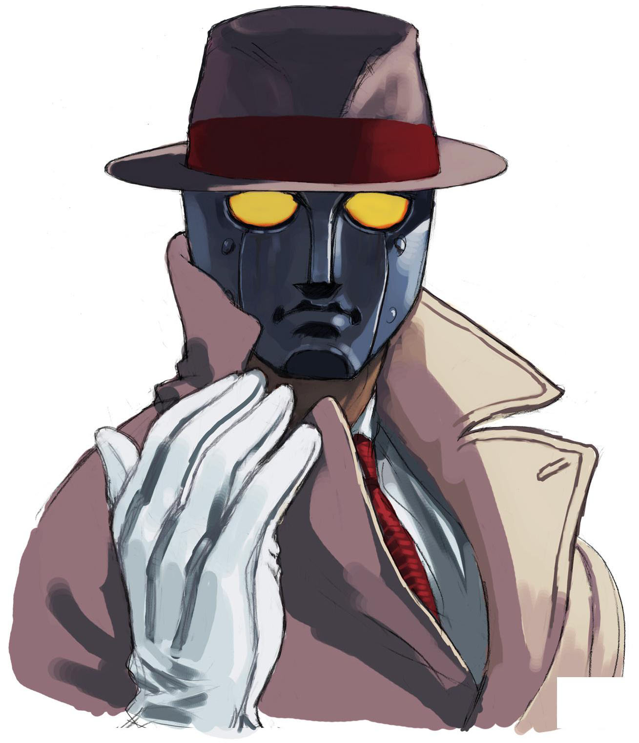 Q is a playable character from the Street Fighter series. He is the most mysterious character of the series and only appeared in Street Fighter III 3rd Strike (1999) and its Online Edition (2011) Re-release so far alongside a few cameos like in Capcom Fighting Jam (2005) While Q is absent in Street Fighter V, the new Character G has a very similar moveset. Are they the same person actually? Almost nothing about him is known, it’s not even safe to say that he is either a Robot or a Human. |